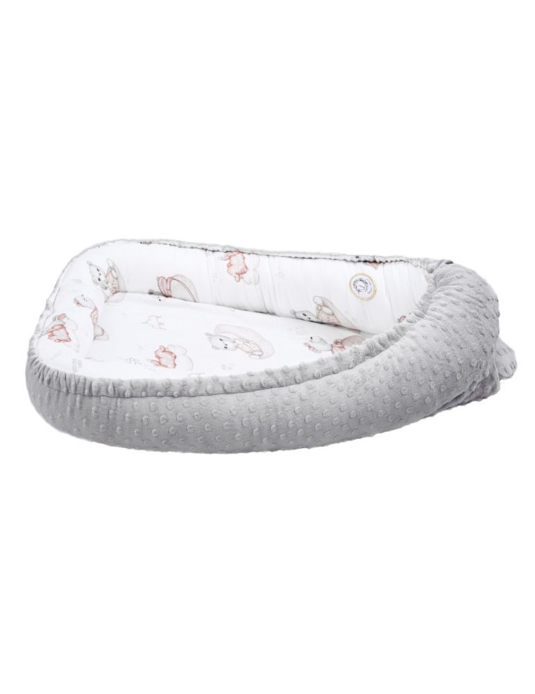 Dedykowany dla niemowląt od 0 do 6-8 miesięcy. Kokon wykonany jest z wysokogatunkowej 100% przędzy bambusowej, którą z drugiej strony uzupełnia mięciutki plusz minky. Kokon jest dwustronny, wypełniony antyalergiczną kulką wysokopuszystą silikonową.