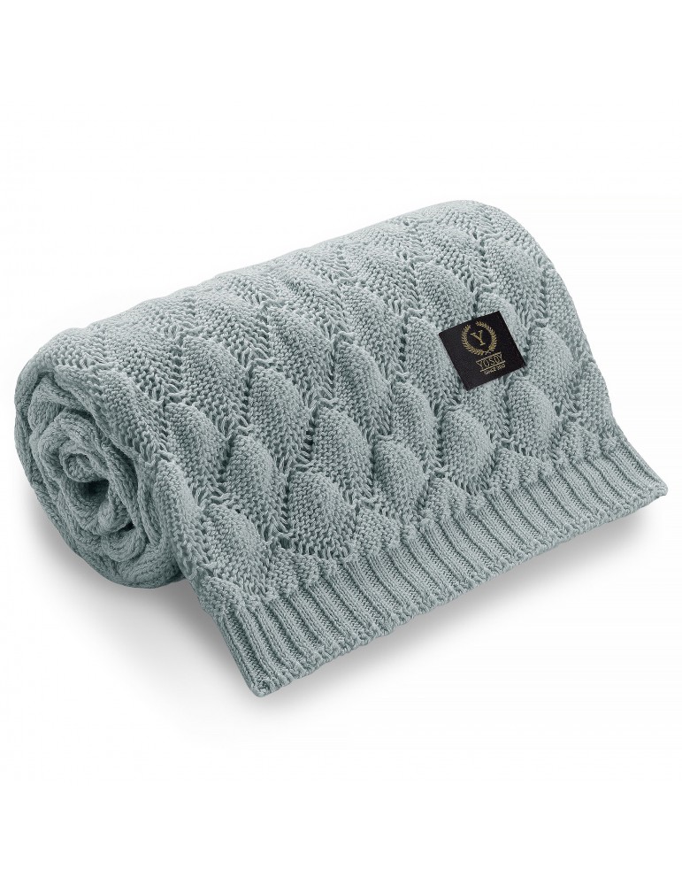 Mięciutki, ażurowy kocyk dziany marki YOSOY wykonany z kompozycji przędzy bambusowej i bawełnianej, dzięki czemu jest w 100% bezpieczny dla delikatnej skóry niemowlaka.