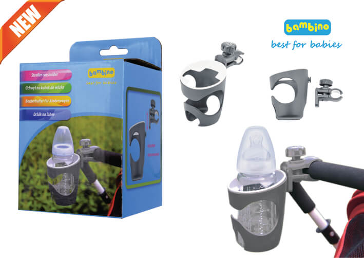 Uchwyt zawiesza się na jakimś elemencie wózka, a osłonka na kubek zawieszana jest na nim na zaczepie. Osłonka może się obracać wokół zaczepu.