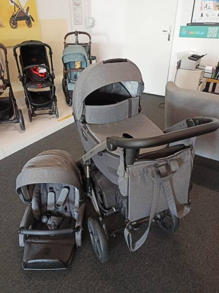 Siedzisko, o wadze 4,85 kg również wygodnie i płynnie się wpina (press & release). W pozycji spacerówkowej także można obserwować dziecko przez okienko w budce oraz chronić je, za pomocą przedłużanego daszku przed słońcem. Załączona wkładka siedziska jest wyjmowana.