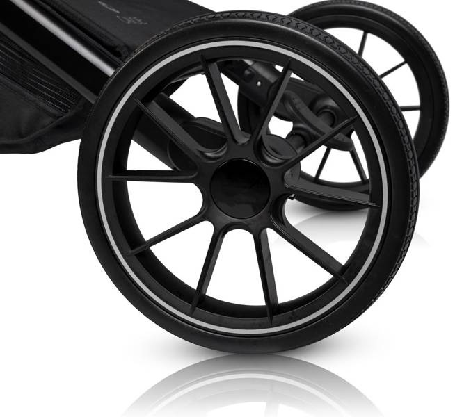 AVEC posiada duże koła z gumową oponą oraz bardzo dobrą amortyzację zarówno z tyłu, jak i z przodu. Jeśli jednak szukasz dodatkowego komfortu dla swoich dzieci, to marka CAVOE oferuje możliwość dokupienia dodatkowego kompletu kół pompowanych.
