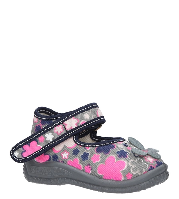 Buty uszyte są z oddychających tkanin i ozdobione kolorowymi aplikacjami.