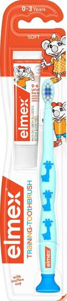 Szczoteczka elmex Nauka Szczotkowania 0-3 lat została opracowana specjalnie do delikatnego oczyszczania pierwszych ząbków.