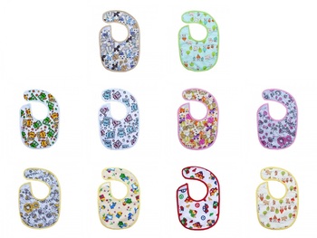 Śliniak wykonany jest z wysokiej jakości bawełny. Wewnętrzna część została podszyta wodoodporną warstwą z miękkiej ceratki, która dodatkowo zabezpiecza ubranie przed zabrudzeniem i czyni śliniak nieprzemakalnym. Wygodne i praktyczne zapinanie na rzep podnosi komfort noszenia śliniaka, a kolorowe aplikacje umilają dziecku posiłek.