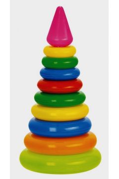 Układanka składa się z 7 plastikowych kółek o różnych wielkościach i kolorach. Zabawa układanką sprzyja rozwojowi koordynacji ruchowo-wzrokowej oraz zdolności manualnych dziecka.