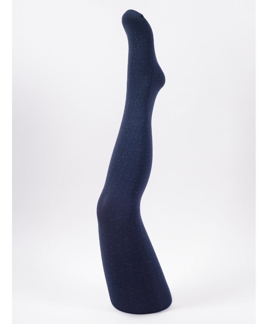 Rajstopy dziewczęce w klasycznym, jednolitym kolorze granatowym. Dzięki brokatowi, delikatnie połyskują. Grubość splotu włókien mikrofibry wynosi 40 DEN. Dodatek włókien elastycznych sprawia, że materiał nie ściąga się i nie marszczy.