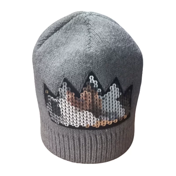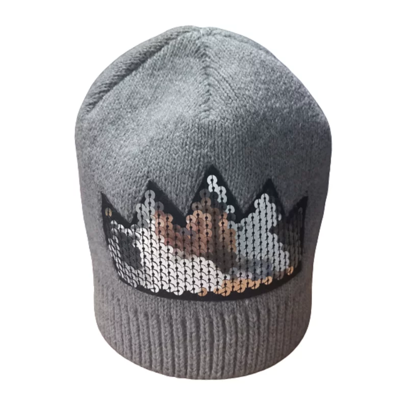 Zimowa czapka w kolorze szarym to nie tylko praktyczny element garderoby na chłodniejsze dni, ale również elegancki dodatek, którym można wyrazić swój styl. Ta dziewczęca/damska czapka wyróżnia się subtelnością szarości i efektownością korony z cekinów, dodając nutę blasku do zimowej stylizacji.