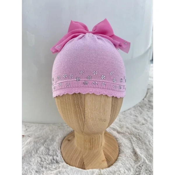 Barbaras Czapka Dziewczęca z Dużą Kokardą 40 - 42 Różowa