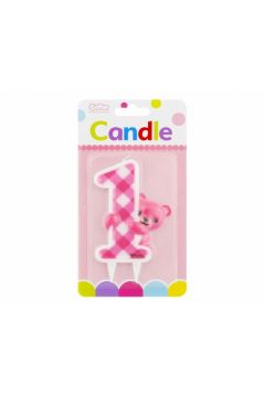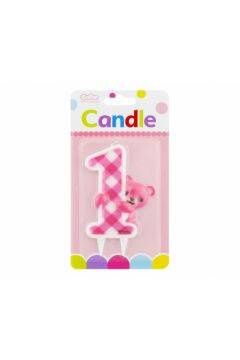 Godan Świeczka Urodzinowa Cyfra 1 Różowa Z Misiem