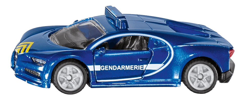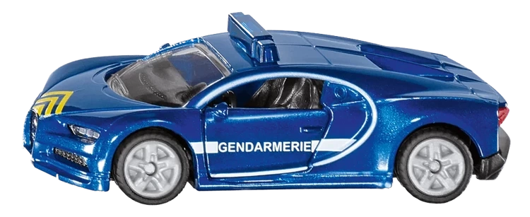 Model samochodu Bugatti Chiron marki SIKU, to wysokiej jakości zabawka, która jest odwzorowaniem prawdziwego pojazdu francuskiej żandarmerii. Auto posiada metalową karoserię i otwierane drzwi. Na dachu samochodu umieszczony jest "kogut" sygnalizacyjny, charakterystyczny dla aut specjalnych.