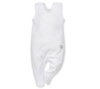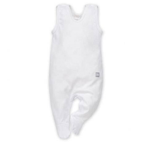 Śnieżnobiałe śpioszki do spania wykonane w 100% z miękkiej bawełny. Wiązany na łańcuszku na ramionach i w stopie. Posiada wygodny, szeroki guzik do pieluszki, a na piętach wycięto miękkie gumowe stopery. W połączeniu z kaftanem lub body tworzą praktyczną odzież na co dzień.
