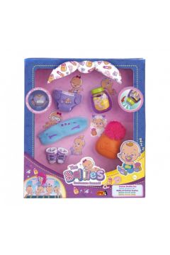 The Bellies – Rozkoszne Brzuszki – Zestaw z akcesoriami „Słodkie Sny” Z tym zestawem ułożysz swoje Rozkoszne Brzuszki do snu, jak prawdziwe bobasy! Zestaw zawiera wszystkie niezbędne akcesoria, aby szybko i troskliwie przygotować Rozkoszne Brzuszki do snu. Zawartość opakowania: 1 opaska na oczy 1 ciepłe skarpetki 1 pieluszka do spania, która świeci w ciemności 1 specjalna gąbka do kąpieli 1 specjalny puder do pupy.