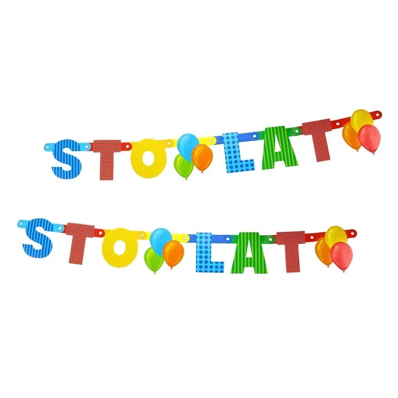 Oryginalnym pomysłem na udekorowanie miejsca zabawy urodzinowej jest zawieszenie kolorowej i niepowtarzalnej girlandy papierowej! Dzięki niej sala czy mieszkanie nabierze radosnego i uroczystego klimatu! Wesoła girlanda urodzinowa przedstawia napis Sto Lat oraz baloniki. Z pewnością będzie pasować do innych dekoracji urodzinowych i na pewno ucieszy każdego solenizanta i jego gości! Kolorowa girlanda z papieru pasuje zarówno na przyjęcie dla chłopca, jak i dla dziewczynki.