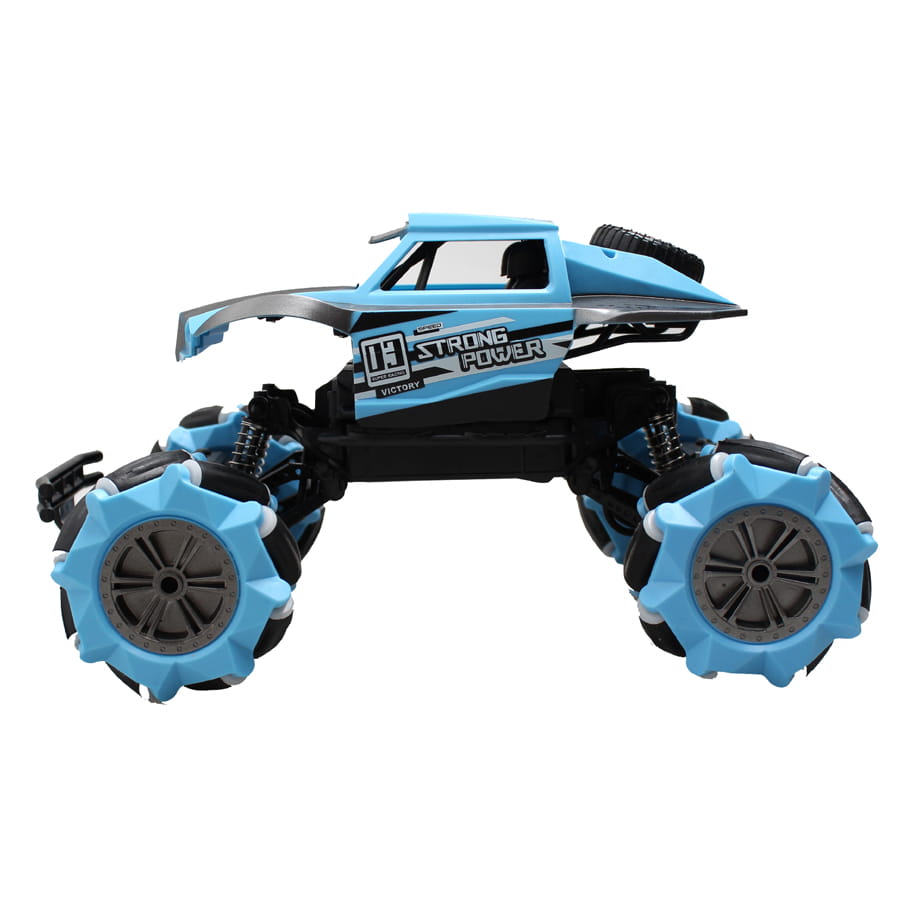 Napęd na 4 koła oraz ruchome zawieszenie sprawiają, że zabawka świetnie sprawdza się w terenie, pokonując ekstremalne przeszkody terenowe.
