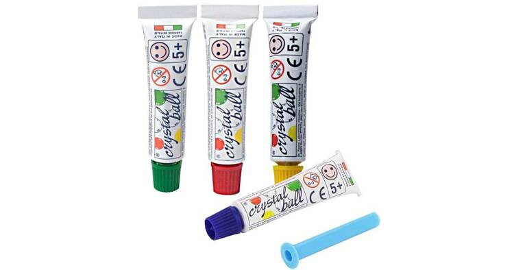 Zasada działania jest bardzo prosta. Pastę z tubki nakładamy na kończówkę dmuchawki i.... dmuchamy! Tak powstają kolorowe balony Crystal Ball!