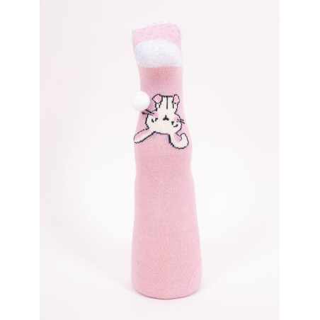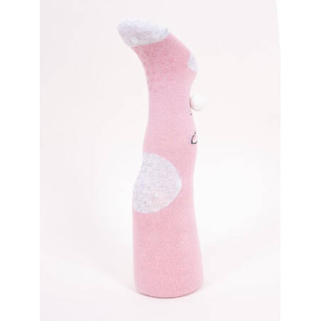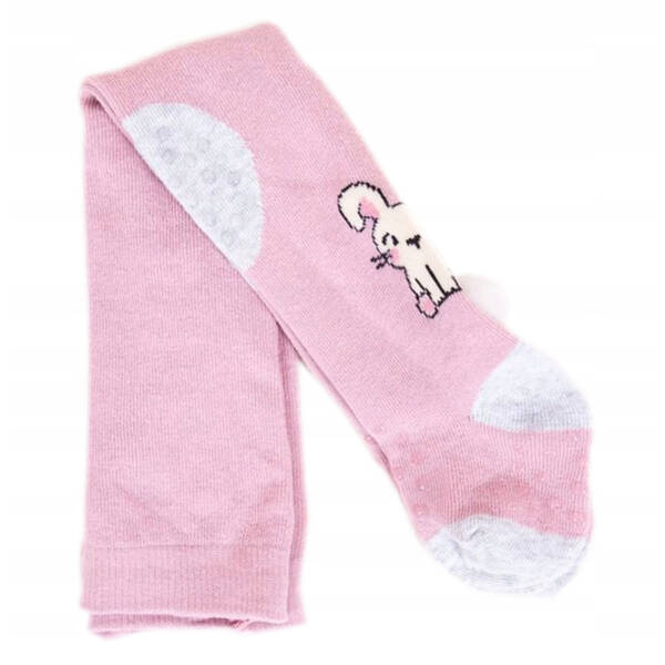 Rajstopy bawełniane, z dodatkiem elastanu. Miłe dla skóry dziecka, zapewniają komfort podczas stawiania pierwszych kroków. Posiadają wzór królika na pupci i nogawce. Dodatkową ozdobą jest aplikacja 3D w postaci futrzanego pompona.