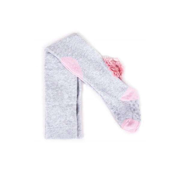 Rajstopy bawełniane, z dodatkiem elastanu. Miłe dla skóry dziecka, zapewniają komfort podczas stawiania pierwszych kroków. Posiadają wzór królika na pupci i nogawce. Dodatkową ozdobą jest aplikacja 3D w postaci kwiatka.