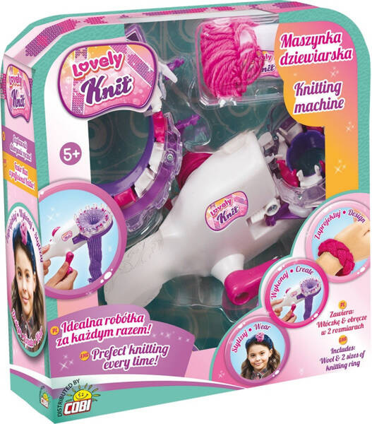 Przy pomocy maszynki możesz zrobić wełniane akcesoria w dwóch rozmiarach, wąskie tuby do przygotowania np. bransoletek lub szerokie tuby z których możesz zrobić opaski na włosy. Nawiń włóczkę na obręcz, zacznij kręcić rączką i patrz jak powstaje wełniana robótka!