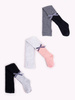 Bawełniane, kryjące rajstopy dla dziewczynki. Dwukolorowe: czarno-szare, szaro-różowe i czarno-ciemnoszare. Posiadają uroczą aksamitną kokardkę z boku nóżki. Uszyte z miękkiej i zarazem wytrzymałej bawełny, która gwarantuje duży komfort noszenia. Dzięki swojej elastyczności doskonale dopasowują się do nóżki dziecka i nie upijają.