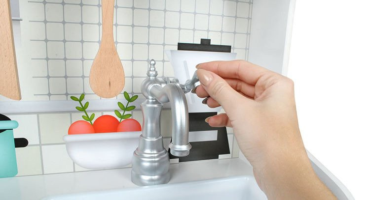 Ruchomy kranik sprawi, że maluszek poczuje się jak w prawdziwej kuchni.