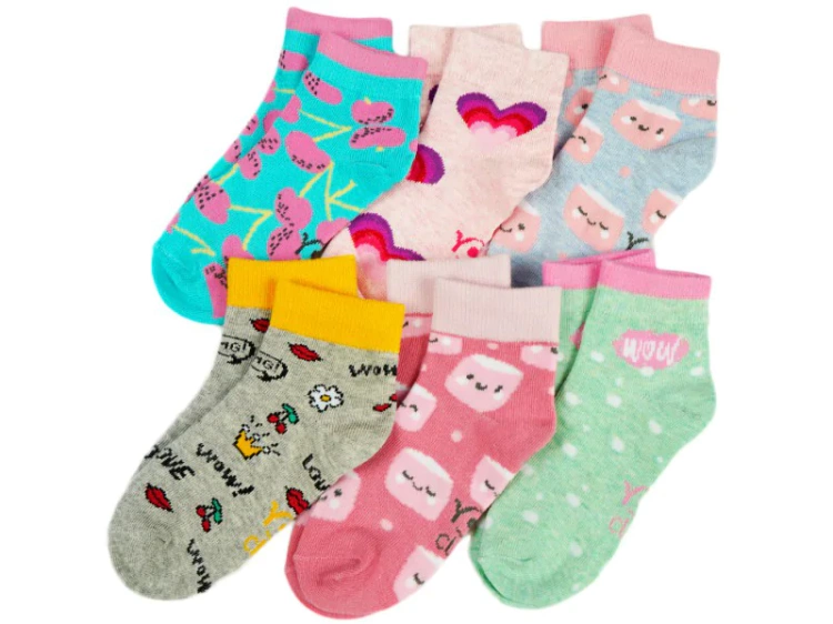 Skarpetki z wzorami służą nie tylko jako ozdoba, ale przede wszystkim pełnią funkcję ochronną. Skarpety bawełniane dla dziewczynki przyczyniają się do utrzymania prawidłowej temperatury ciała dziecka. Zapewniają doskonały przepływ powietrza, dlatego można nosić je nawet w bardzo ciepłe dni. Komplet 6 par skarpetek dziewczęcych.