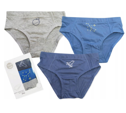 Nowe majtki bawełniane w fasonie slipy. Zestaw zawiera 3 szt. Majteczki 100% bawełniane w pasie delikatna gumka, świetny wzór dla fana KOSMOSU. Majtki zapakowane w ładne ozdobne pudełeczko, świetnie nadają się na prezent. Produkt oryginalny z metkami, na licencji, jakość pierwsza.