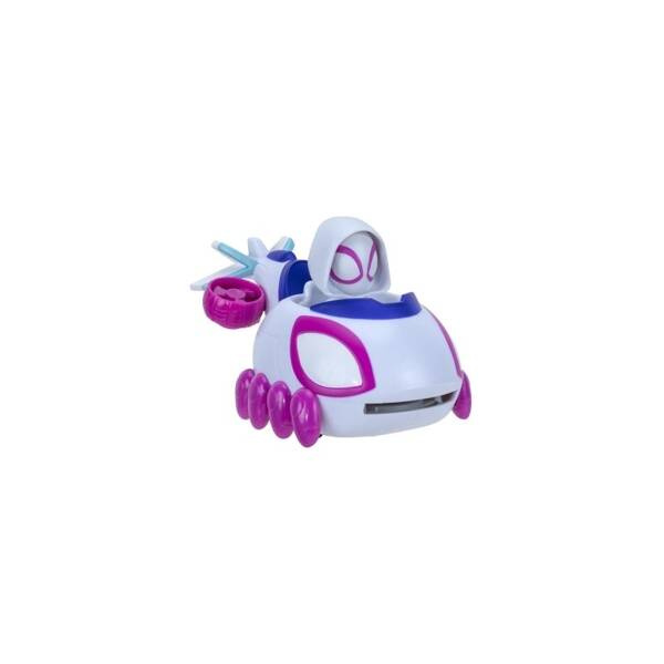 Różowo-biały pojazd Ghost Spider na pewno przyciągnie uwagę Twojego dziecka! A gdy tylko pojawią się problemy, możecie łatwo utrzymać niebezpieczeństwo w ryzach – wystarczy nacisnąć głowę Ghost Spider, aby Disc Dasher wystrzelił dysk.