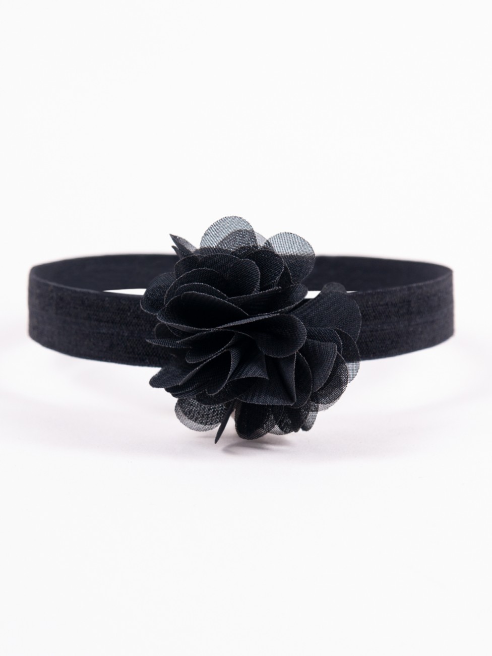 Dla dziewczynek – na wyjątkowe okazje. Elastyczny pasek. Ozdobny kwiatek. Śliczna opaska dla dziewczynki w kolorze czarnym. Na wąskim, elastycznym pasku umieszczony jest efektowny kwiatek.