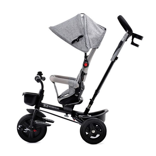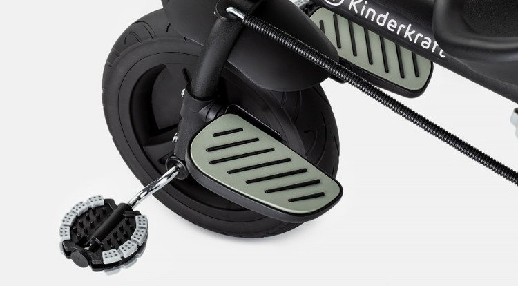 Nowoczesny rowerek Kinderkraft może być wykorzystywany na trzy sposoby: maluch może jeździć samodzielnie, trzymać nóżki na podnóżku albo pedałować na wolnym kole, przy czym rodzic trzyma kierownicę, korygując manewry pociechy. Obrotowe siedzisko można ustawić przodem albo tyłem do kierunku jazdy. Rozkładane podnóżki zapewniają komfortową podróż nawet dzieciom, które nie dosięgają jeszcze do pedałów. Wielofunkcyjny, składany rower Aveo wyposażono ponadto w dodatkowe akcesoria: dwa kosze, dzwonek, torbę na drobiazgi oraz uchwyt na kubek.
