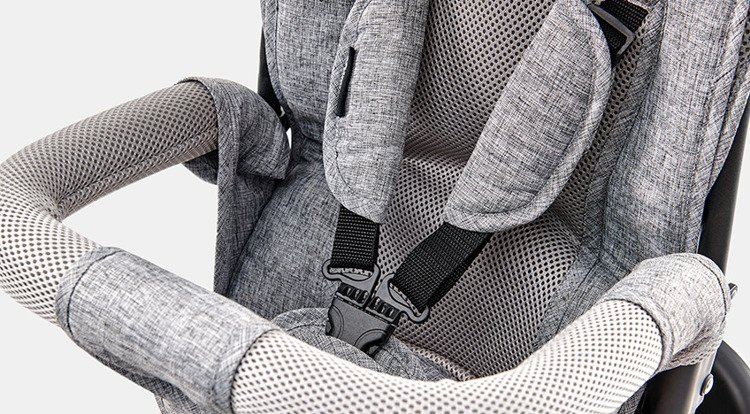 - 3-punktowe pasy z możliwością regulacji zapewniają bezpieczeństwo podczas spaceru,