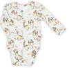 Bawełniane body niemowlęce z długim rękawem. Ubranko zdobi nadruk, wykonany trwałą metodą farb wodnych, która sprawia, że nie spiera się nawet po wielu praniach.