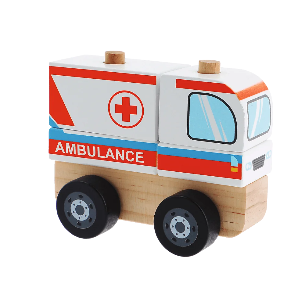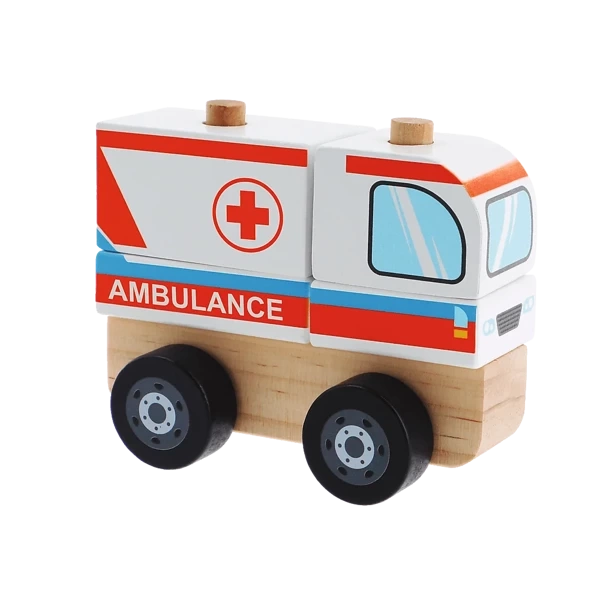 Ambulans - zabawka drewniana, która rozwija zdolności motoryczne oraz wzmacnia odruch chwytania. Zabawka pobudza wyobraźnię oraz rozwija koorynację wzrokowo-ruchową dziecka.