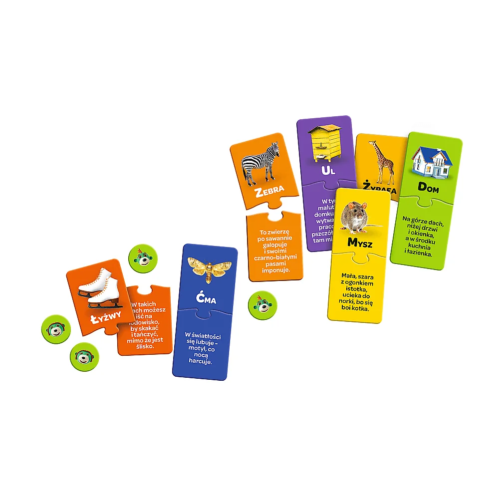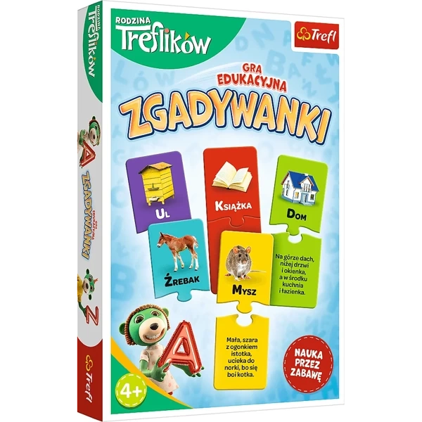 Zagadkowy Alfabet Rodzina Treflików to gra edukacyjna, która poprzez zabawę wprowadza dziecko w świat liter oraz zagadek. Podczas wesołej gry w zgadywanki dziecko poszerza zasób słownictwa, a także rozwija zdolność logicznego myślenia oraz szybkiego łączenia faktów.