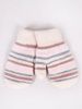 Praktyczne, dziewczęce rękawiczki w kolorze delikatnego różu, z kolorowymi paseczkami. Dwuwarstwowe, stanowią znakomitą ochronę przed chłodem. Świetnie prezentują się na dłoniach.