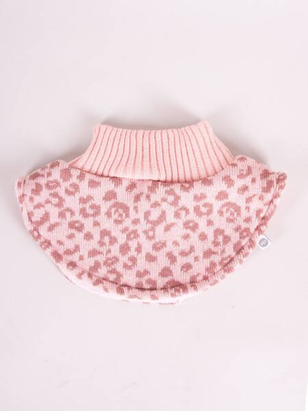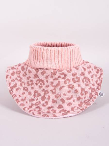 Dziewczęcy golfik w kolorze różowym, na całości z motywem panterki. Dwuwarstwowy – z polarową podszewką.
