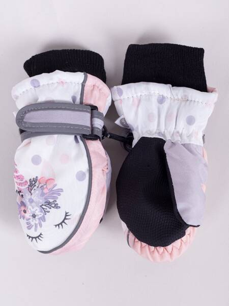 Narciarskie rękawiczki dziewczęce w pastelowych kolorach z motywem jednorożca. Wnętrze rękawiczki wykończone miłym polarem.