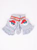 Dziecięce rękawiczki, to obowiązkowy dodatek do jesiennej i zimowej garderoby. Mitenki pozwalają ochronić dłoń przed chłodem, pozostawiając odkryte palce. Dodatkowo posiadają klapkę zapinaną na guzik, którą można w razie potrzeby odpiąć i nałożyć na palce, zakrywając je i zabezpieczając przed zimnem. Klapeczka ozdobiona jest zabawnym bałwankiem. Model dostępny w kolorze szarym z pomarańczowymi paseczkami na mankiecie.