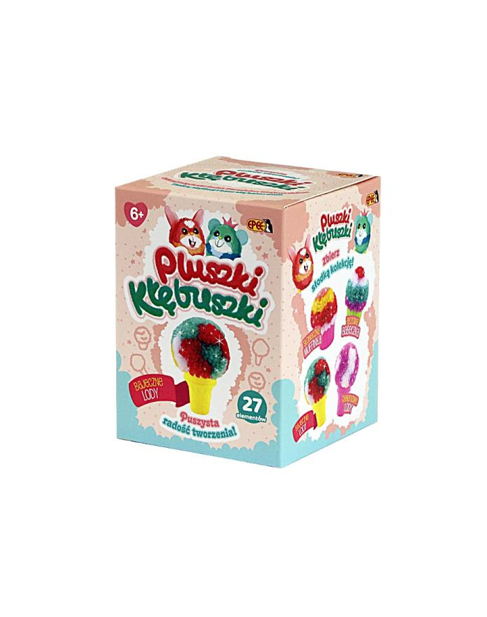 EPEE Pluszki-Kłębuszki Bajeczne Lody 27 elementów. Pluszki-Kłębuszki to urocze zestawy DIY, dzięki którym stworzyć można własnego pluszowego zwierzaczka lub słodki deser. To świetna zabawa w tworzenie i stylizację, która pobudza wyobraźnię, rozwija kreatywność i zdolności manualne, a przede wszystkim daje mnóstwo radości! Samo wykonanie zabawki jest bardzo proste i polega na przyklejaniu specjalnych włóczek w wybranych miejscach. W zestawie znajdziemy wszystkie potrzebne elementy do stworzenia Bajecznych Lodów. Dodatkowo istnieje możliwość zebrania wszystkich 4 zestawów słodkich deserów, aby zabawa była jeszcze lepsza.