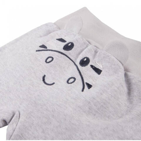 Szary półśpioch niemowlęcy z kolekcji "Baby Love" uszyty z miękkiej i przyjemnej w dotyku melanżowej dzianiny bawełnianej. W pasie półśpiocha wszyty bez uciskowy ściągacz, który nie uwierające brzuszka dziecka. Z tylu półśpiocha znajduje się uroczy haft zwierzątka. Mamy chętnie wybierają półśpiochy niemowlęce dla swoich maluszków. Plusem są zakryte stopki maluszka, które będą ochraniane przed chłodem.