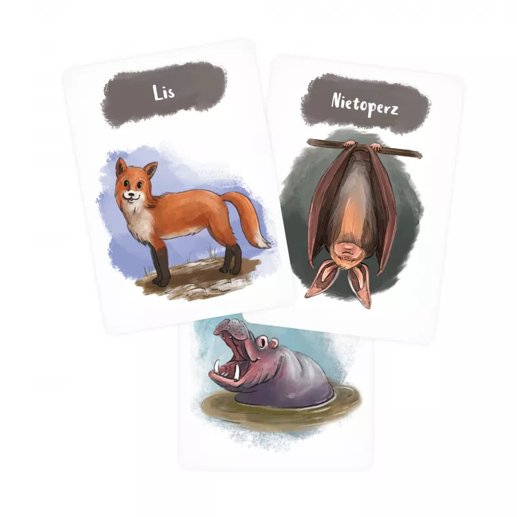CEL GRY: Pozbycie się wszystkich swoich kart z ręki przez poprawne odgadywanie gatunków na podstawie informacji z tyłu.