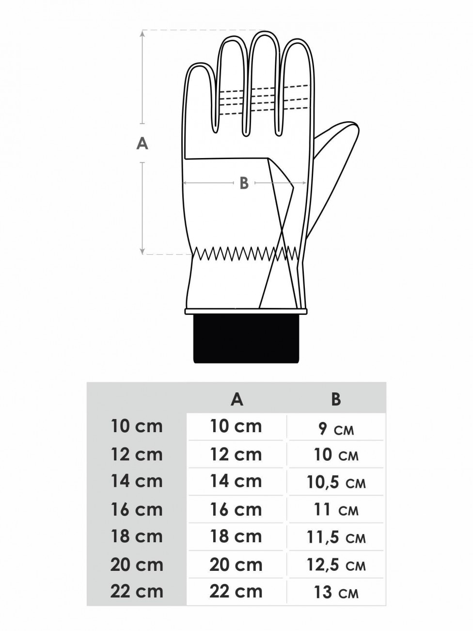 Na nadgarstku zapinane na rzep. Na górze zakończone dzianinowym ściągaczem, który zabezpiecza przed dostaniem się śniegu pod rękawiczkę. Na kciuku i wewnętrznej stronie dłoni posiadają dodatkową warstwę antypoślizgową ułatwiającą chwytanie.