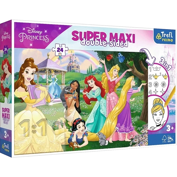 Puzzle Super Maxi 24 to połączenie świetnej zabawy z radością z samodzielnego tworzenia. Dostępne są wzory z ulubionymi bohaterami animowanych filmów i seriali dla dzieci.