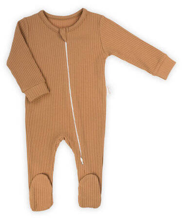 Karmelowy pajacyk dla chłopca wykonany z prązkowanej bawełny z niewielką ilością elastanu. Zdecydowanie must have każdego rodzica. Zapinany na zamek. Uszyty z materiału posiadającego certyfikat Oeko-Tex Standard 100 Tekstylia godne zaufania.Fason jest lużny i wygodny, idealnie sprawdzi się jako jedno z pierwszych ubranek maluszka.
