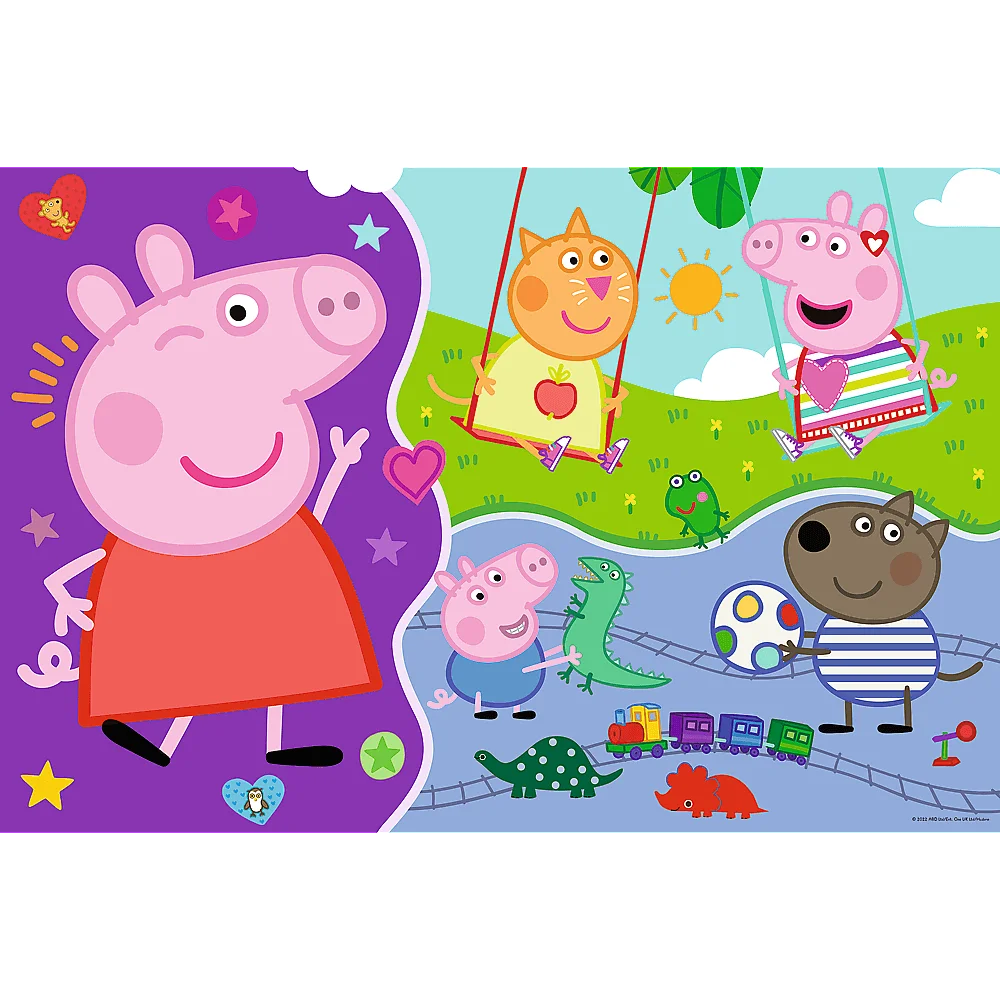 Poznaj wesołą Świnkę Peppę to aż trzy zabawy w jednym produkcie! Układanka z bardzo dużymi elementami sprawdzi się świetnie już od 2 roku życia.