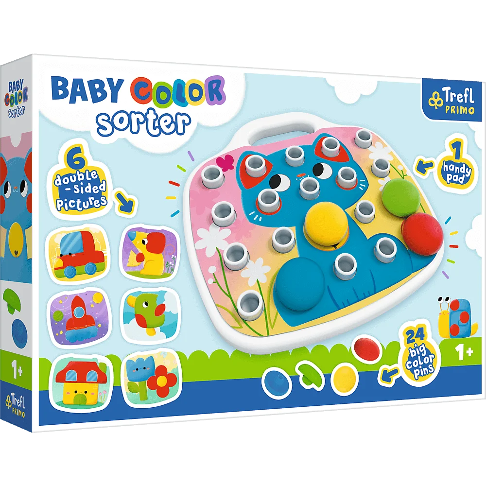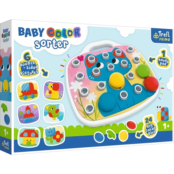 Sorter kolorów to układanka z dużymi kolorowymi pinezkami dla najmłodszych dzieci.