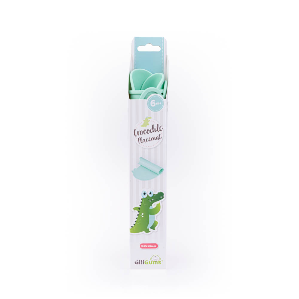 Ten zabawny krokodylek to praktyczna mata, której można używać samodzielnie lub korzystać z niej jako podkładki pod talerz czy kubeczek. Wykonana w całości z silikonu posiada powierzchnię antypoślizgową, co ułatwi maluchowi spożywanie posiłków. Mata jest giętka i elastyczna, dzięki czemu bez trudu zwiniesz ją w rulon i zabierzesz na każdą wycieczkę, a po użyciu, bez najmniejszych problemów wyczyścisz.