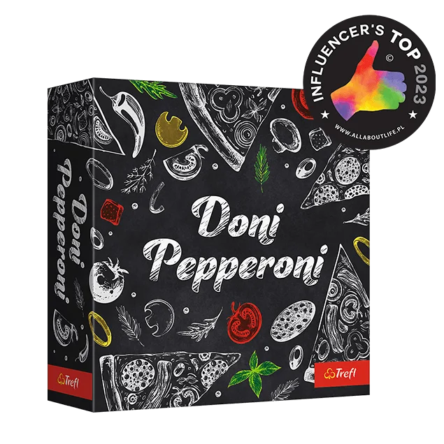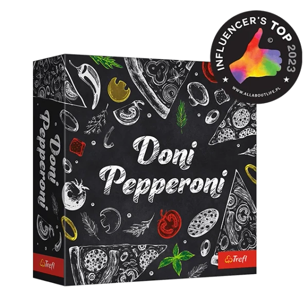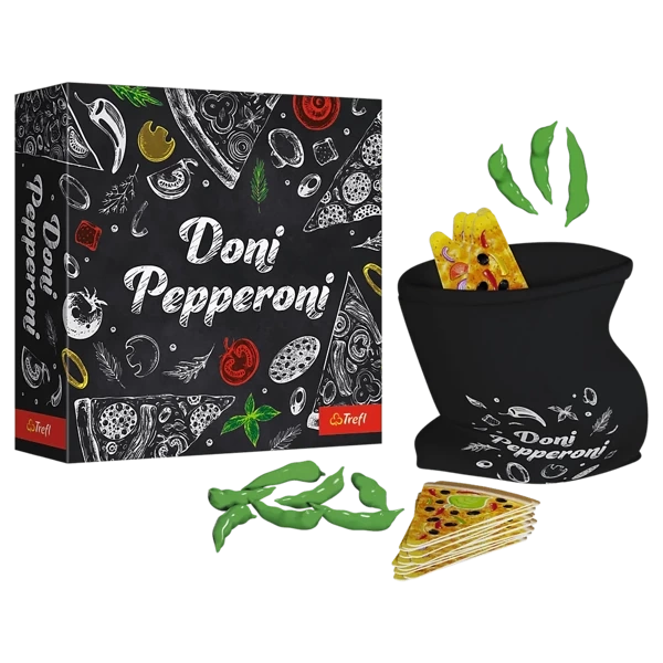 Doni Pepperoni to szalona gra na spostrzegawczość! Twoim zadaniem jest odnajdywanie pasujących składników i szybkie zdobywanie kawałków pizzy, zanim zrobią to inni gracze. Musisz uważać na to, co mówisz i robisz, bo chwila nieuwagi może spowodować, że zostaniesz ukarany spalonym placekiem. Celem gry jest zdobycie jak największej liczby smakowitych kawałków pizzy. Za każdą pomyłkę otrzymasz spalony placek, który zmniejszy twoje punkty na końcu gry.