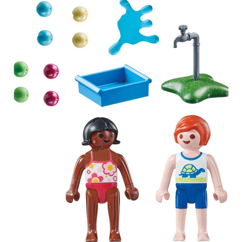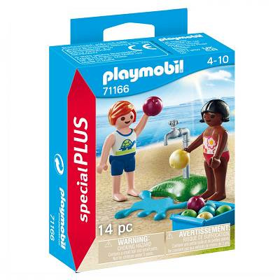 Playmobil Dzieci z bombami wodnymi 71166. Weź udział w bitwach wodnych z zestawem Playmobil! Dzieci z bombami wodnymi już napełniły balony przy kranie i są gotowe na ekscytującą zabawę. Baw się tym zestawem samodzielnie lub połącz go z dowolnym innym zestawem PLAYMOBIL.