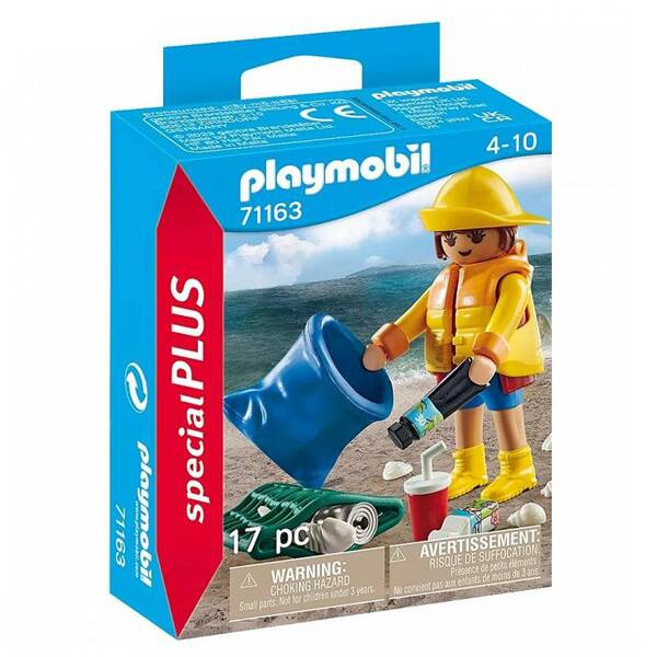 Playmobil Ekolożka 71163.Ziemia jest tylko jedna, więc aktywistka ekologiczna jest oddana ochronie przyrody. Wyposażona w duży worek na śmieci, zbiera śmieci na plaży. Kubki po napojach, kartony po mleku, tuby po kremach, to niewiarygodne jak śmiecą urlopowicze. Zestaw Special Plus zawiera ekologa PLAYMOBIL z torbą na śmieci, siatkową torbą, kubkiem na napój, puszką i innymi dodatkami. Nakładki na rękawy i nakrycia głowy można odpiąć. Baw się tym zestawem samodzielnie lub połącz go z dowolnym innym zestawem PLAYMOBIL.