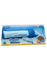 - wkręć butelkę z płynem do nakrętki z wężykami (znajdującej się w zabawce) i naciśnij spust wyrzutni, a wystrzeli z niej strumień baniek